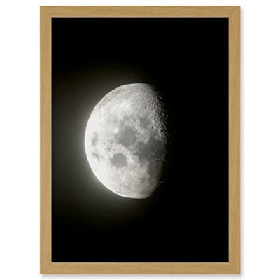 Artery8 Lunar Phases Waning Gibbous Moon Space Astronomy Artwork Framed Wall Art Print A4