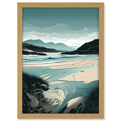 Artery8 Luskentyre Sands Coastal Landscape Illustration Artwork Framed A3 Wall Art Print