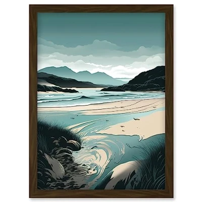 Artery8 Luskentyre Sands Coastal Landscape Illustration Artwork Framed Wall Art Print A4