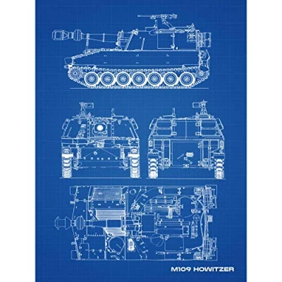 Artery8 M109 Howitzer Artillery US Military Blueprint Plan Large Wall Art Poster Print Thick Paper 18X24 Inch