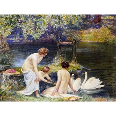 Artery8 Macbeth Summer Morning Women Swans Painting Extra Large XL Wall Art Poster Print