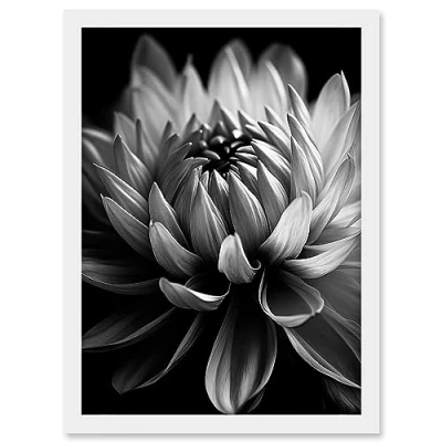 Artery8 Macro Close Up Dahlia Flower Black and White Photo Artwork Framed A3 Wall Art Print