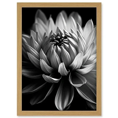 Artery8 Macro Close Up Dahlia Flower Black and White Photo Artwork Framed A3 Wall Art Print