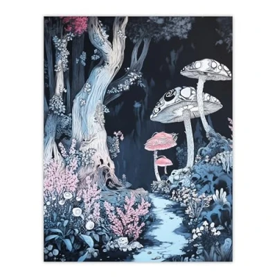 Artery8 Magical Forest Mushroom Wildflower Path Fantasy Living Room Large Wall Art Poster Print Thick Paper 18X24 Inch