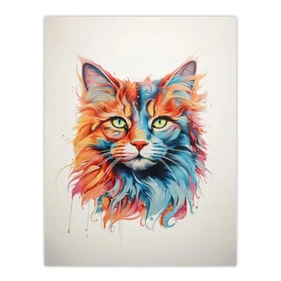 Artery8 Maine Coon Cat Lover Gift Pet Portrait Orange Blue Pink Artwork Painting Large Wall Art Poster Print Thick Paper 18X24 Inch