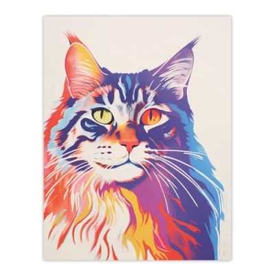 Artery8 Maine Coon Cat Risograph Bright Orange Purple Blue Screenprint Artwork Riso Interior Design Extra Large XL Wall Art Poster Print