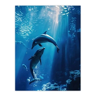 Artery8 Majestic Dolphins Marine Life Underwater Seascape Living Room Extra Large XL Wall Art Poster Print