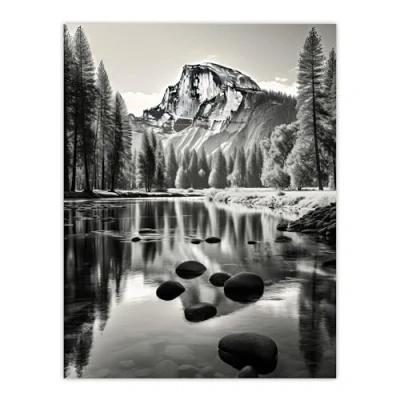 Artery8 Majestic Yosemite Valley Iconic Half Dome Black And White Photo Photography Large Wall Art Poster Print Thick Paper 18X24 Inch