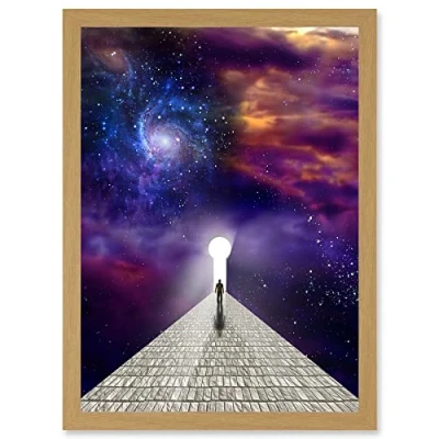 Artery8 Man Before Keyhole Surreal Abstract Space Nebula Galaxy A4 Artwork Framed Wall Art Print