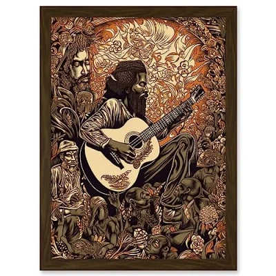 Artery8 Man Playing Songs of his Ancestors on the Guitar Artwork Framed A3 Wall Art Print