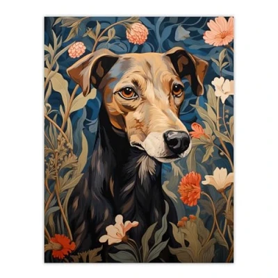 Artery8 Manchester Terrier On Elegant Blue Floral Backdrop William Morris Style Pattern Artwork Flowers Extra Large XL Wall Art Poster Print