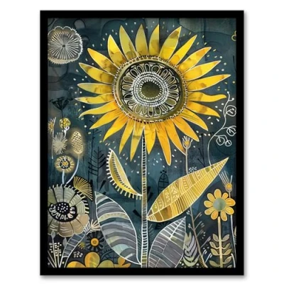 Artery8 Mandala Pattern Orange Blue Sunflower Design Living Room Artwork Framed Wall Art Print A4