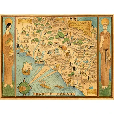 Artery8 Map Ames 1929 Historic Orange County California Pictorial Premium Wall Art Canvas Print 18X24 Inch