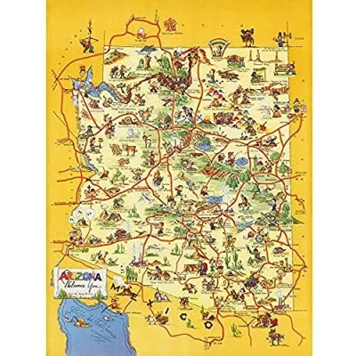 Artery8 Map Avey 1942 Arizona Welcomes You Art Print Canvas Premium Wall Decor Poster Mural