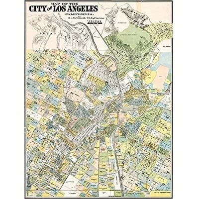 Artery8 Map City Of Los Angeles California 1884 Art Print Canvas Premium Wall Decor Poster Mural
