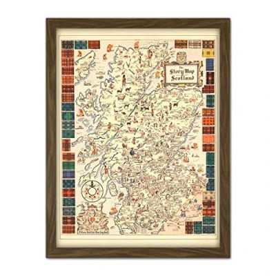 Artery8 Map Colortext 1935 Story Scotland Historic Pictorial Artwork Framed Wall Art Print 18X24 Inch