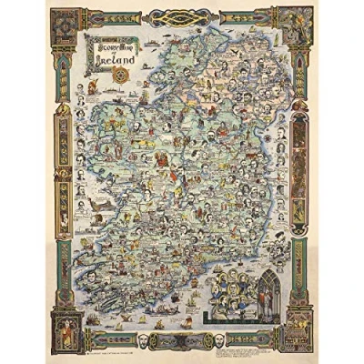 Artery8 Map Colortext 1936 Story Ireland Historic Pictorial Large XL Wall Art Canvas Print