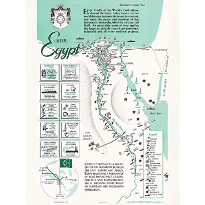Artery8 Map Egyptian 1949 Egypt Resources Industry Premium Wall Art Canvas Print 18X24 Inch