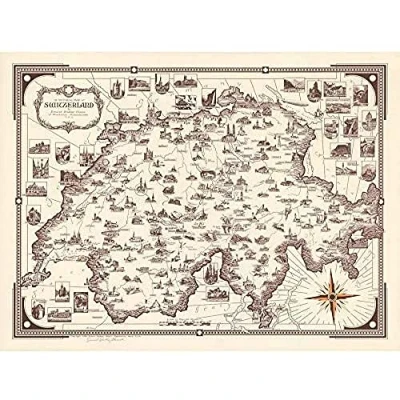 Artery8 Map Ernest Dudley Chase 1936 Switzerland Pictorial Art Print Canvas Premium Wall Decor Poster Mural