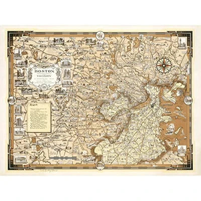 Artery8 Map Ernest Dudley Chase 1938 Boston Ma Pictorial Art Print Canvas Premium Wall Decor Poster Mural
