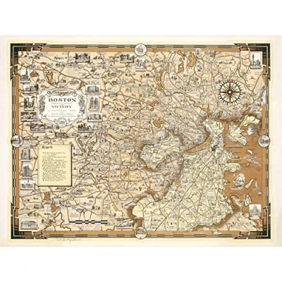 Artery8 Map Ernest Dudley Chase 1938 Boston Ma Pictorial Premium Wall Art Canvas Print 18X24 Inch