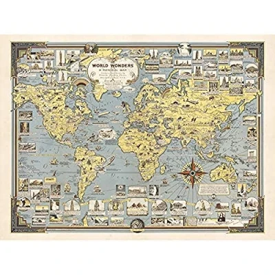 Artery8 Map Ernest Dudley Chase 1939 World Wonders Pictorial Art Print Canvas Premium Wall Decor Poster Mural