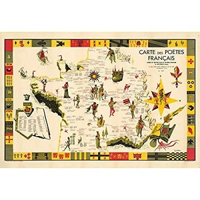 Artery8 Map Gattaz 1928 French Poets Pictorial Art Print Canvas Premium Wall Decor Poster Mural