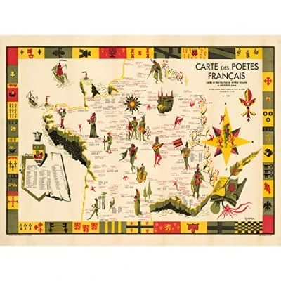 Artery8 Map Gattaz 1928 French Poets Pictorial Large Wall Art Poster Print Thick Paper 18X24 Inch
