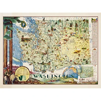 Artery8 Map Herman 1948 Washington State Pictorial Unframed Wall Art Print Poster Home Decor Premium