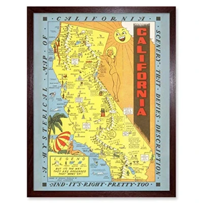 Artery8 Map Lindgren 1948 California Pictorial Art Print Framed Poster Wall Decor 12x16 inch