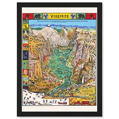 Artery8 Map Mora 1931 Yosemite Valley Pictorial National Park USA Artwork Framed Wall Art Print A4