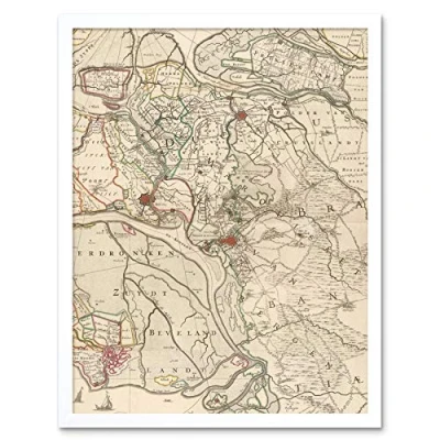 Artery8 Map Old Line Of Schouwen Duiveland Netherlands Art Print Framed Poster Wall Decor 12x16 inch
