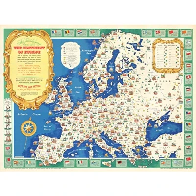 Artery8 Map Paine 1945 European Nations Industries Pictorial Premium Wall Art Canvas Print 18X24 Inch