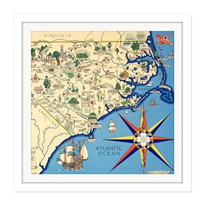 Artery8 Map Pugh 1937 North Carolina Nature Lovers Pictorial Square Wooden Framed Wall Art Print Picture 16X16 Inch