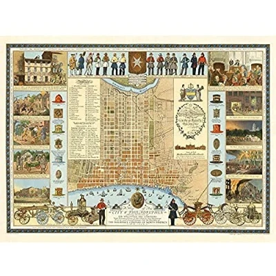 Artery8 Map Riegel 1938 Philadelphia Fire Companies Pictorial Art Print Canvas Premium Wall Decor Poster Mural