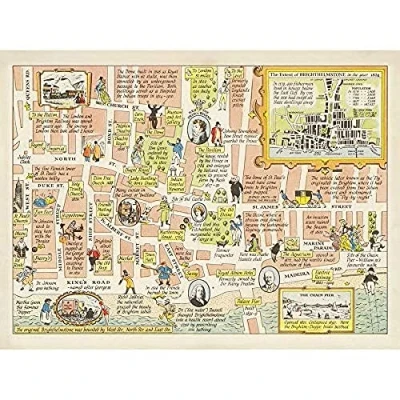 Artery8 Map Sayer 1948 Brighton Brighthelmstone Art Print Canvas Premium Wall Decor Poster Mural