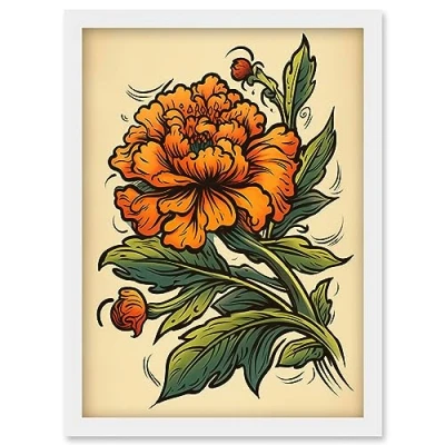 Artery8 Marigold Flower Old School USA Tattoo Ink Body Art Rockabilly Americana 50s Artwork Framed Wall Print A4