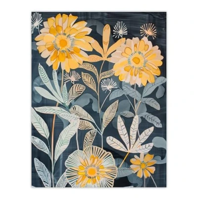 Artery8 Marigold Flowers Artwork Dark Forest Floral Blue Living Room Extra Large XL Wall Art Poster Print