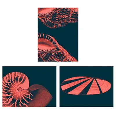 Artery8 Marine Coral Pink Ocean Seashells Nautilus Set Of 3 Unframed Wall Art Prints Bathroom Bedroom Aesthetic Cephalopod 12X16 Inch