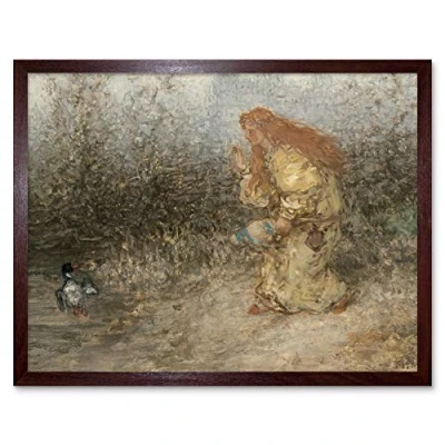 Artery8 Matthijs Maris Fairytale Birds Girl Painting Art Print Framed Poster Wall Decor 12x16 inch