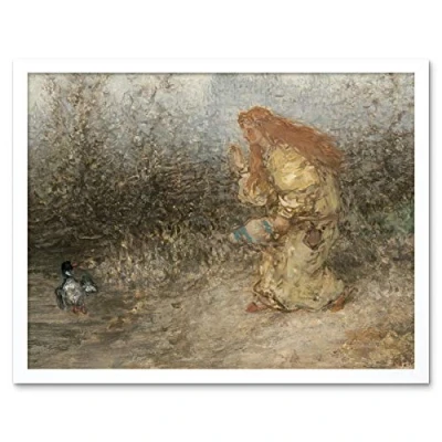 Artery8 Matthijs Maris Fairytale Birds Girl Painting Art Print Framed Poster Wall Decor 12x16 inch