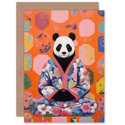 Artery8 Meditating Panda Meditation Yogi Yoga Relax for Wife Her Mum Sister Daughter Mom Gran Nan Birthday Thank You Congratulations Blank Art Greeting Card
