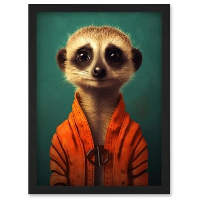 Artery8 Meercat Portrait Orange Quilted Jacket on Teal Background Modern Artwork Framed Wall Art Print A4