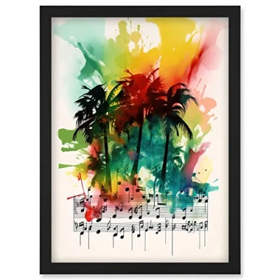 Artery8 Melodic Oasis Tropical Palm Tree Sonata Music Modern Splat Paint Watercolour Painting Artwork Framed Wall Art Print A4