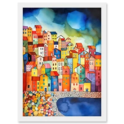 Artery8 Menton France Seaside Town Folk Art Artwork Framed A3 Wall Print