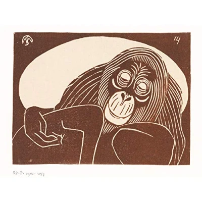 Artery8 Mesquita Orangutan Animal Ape Woodcut Art Print Canvas Premium Wall Decor Poster Mural