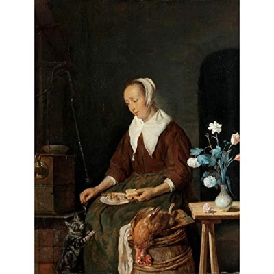 Artery8 Metsu Woman Eating Known As The Cats Breakfast Premium Wall Art Canvas Print 18X24 Inch
