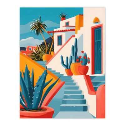 Artery8 Mexican Village Cactus Colourful Hispanic Latino Living Room Bathroom Extra Large XL Wall Art Poster Print