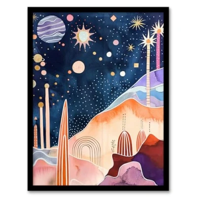 Artery8 Mid Century Modern Abstract Boho Space Landscape Living Room Artwork Framed Wall Art Print A4