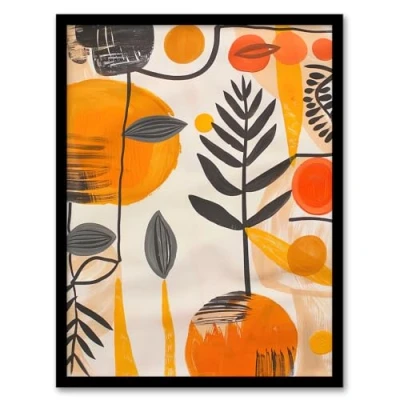 Artery8 Mid Century Modern Abstract Plant Lover Painting Living Room Artwork Framed Wall Art Print A4